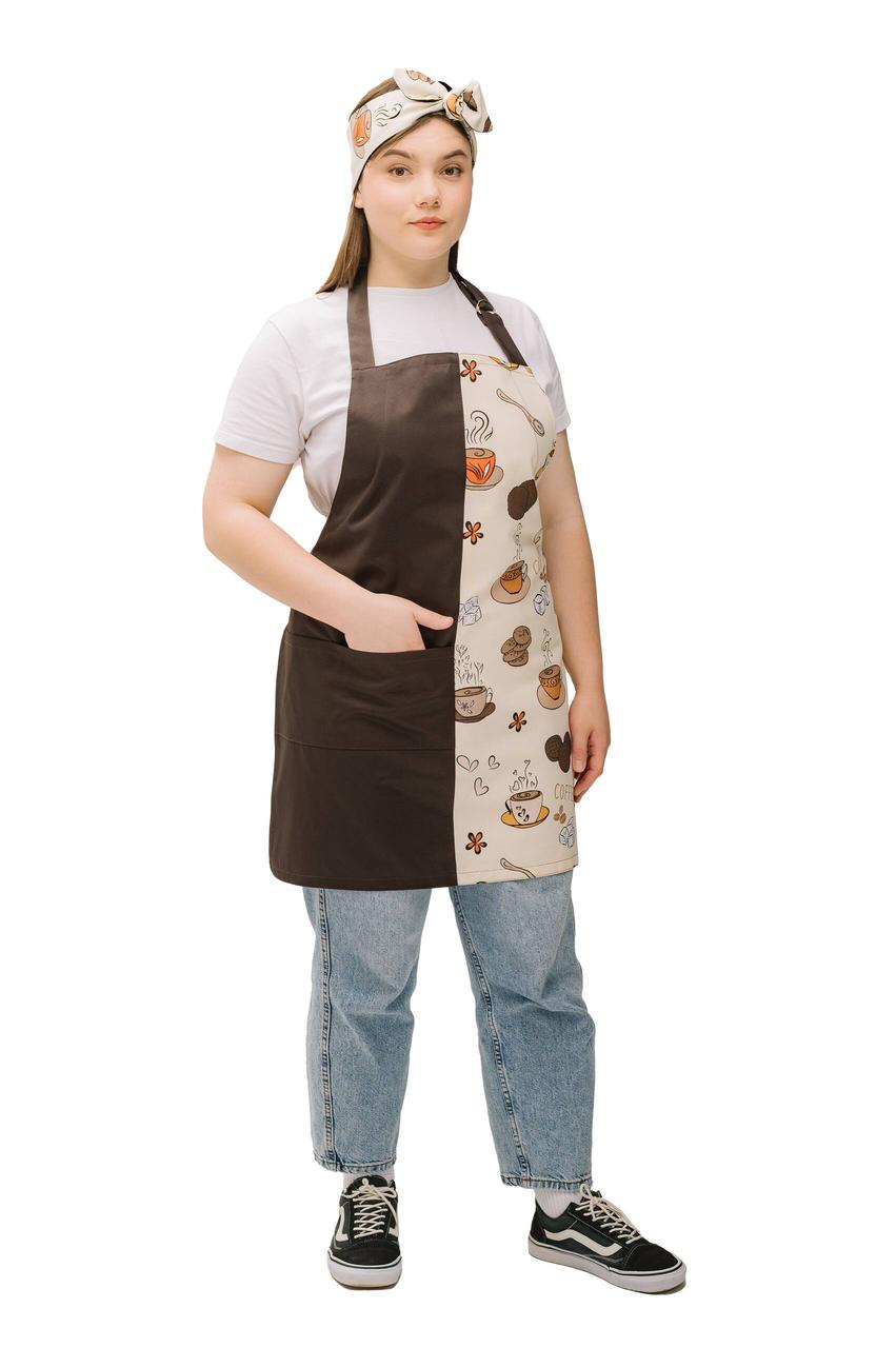 Кухонний комплект “Кава” — фартух з нагрудником і двостороння солоха з тканин DUCK та Грета, тефлонове просочення